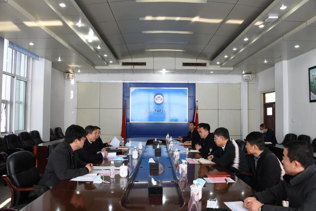 校长郝传波向孙纲副厅长一行介绍了学校发展历程,就学校鸡西校区教育资源转让、后勤整改以及学校当前建设发展中存在的主要问题进行了专题汇报。
