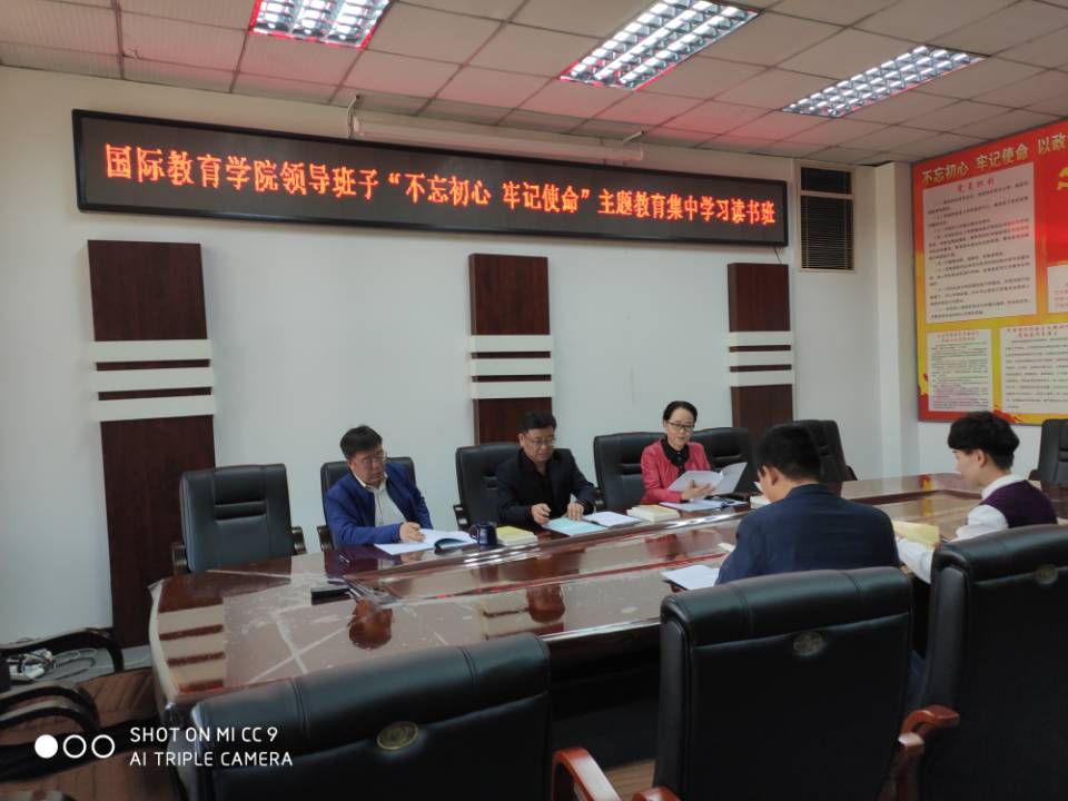 9月19日下午,国际教育学院领导班子成员和无课的党支部书记和在科高0606会议室举行了国际教育学院领导班子“不忘初心牢记使命”主题教育集中学习读书班。会议由学院党委书记邬承斌主持。