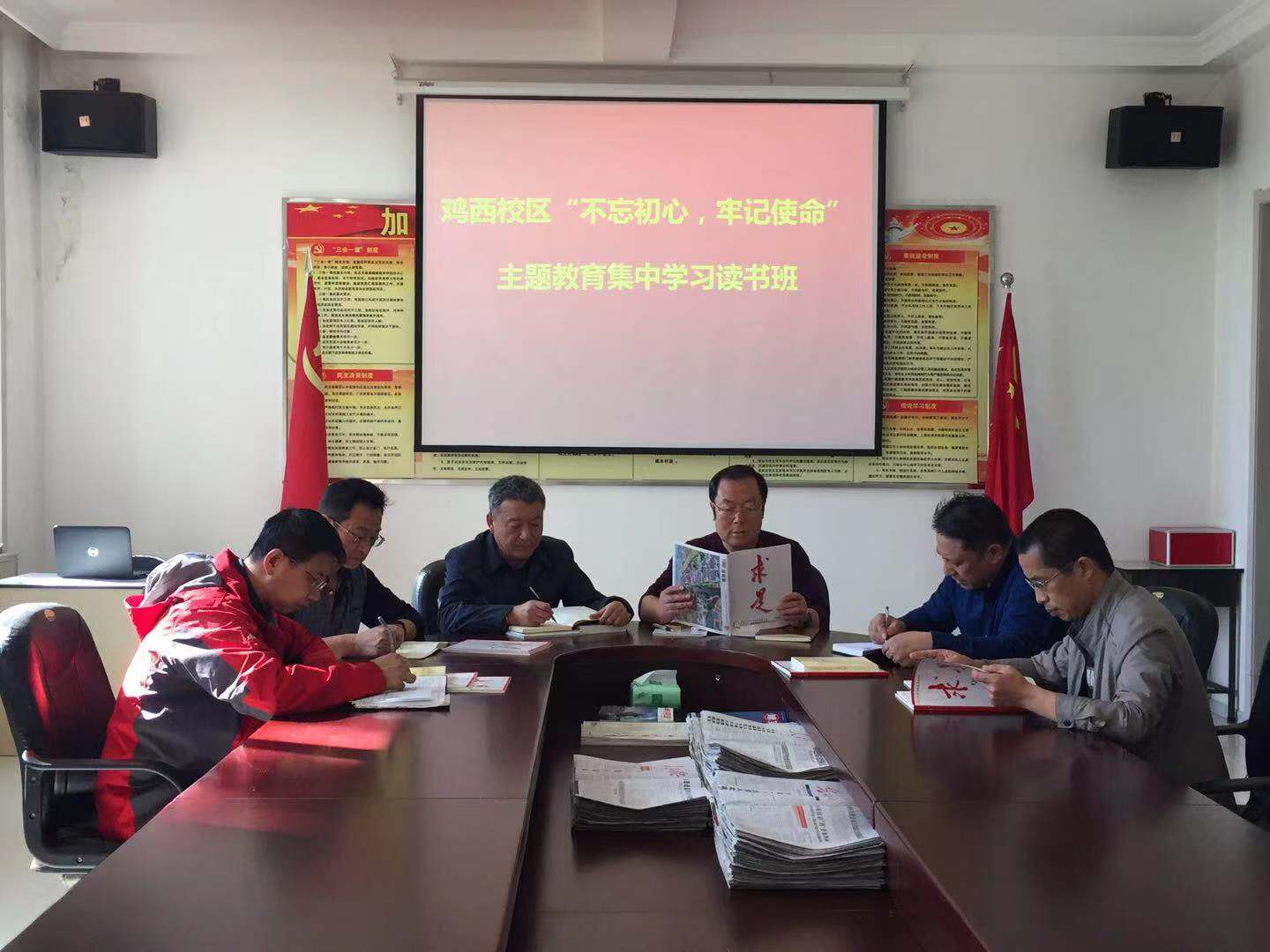 9月20日,鸡西校区领导班子成员和党支部书记在209会议室举行了鸡西校区党总支班子“不忘初心牢记使命”主题教育集中学习读书班。会议由党总支书记张德本主持。