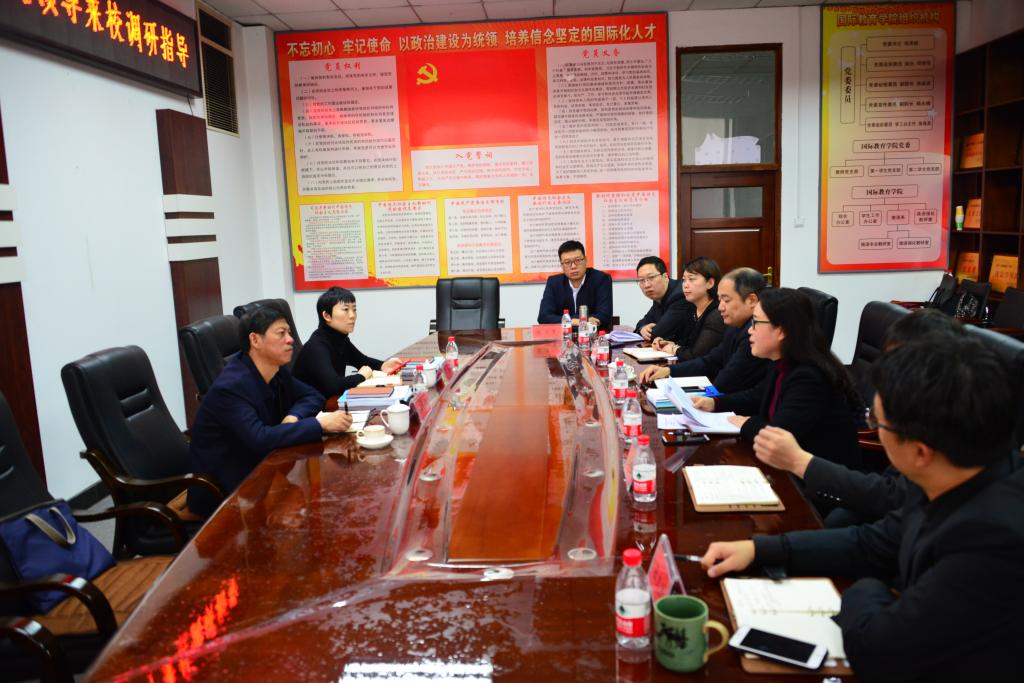 11月25日下午,省教育厅对外合作与交流处处长宗希云,吴昊来校调研,听取“改进高校国际交流合作评价”的意见和建议,指导和解决华体(中国)国际合作与交流工作中存在的实际问题。副校长陈凯云在科技大厦高层0606会议室接待并主持座谈会,国际教育学院院长兼国际交流合作处处长母丽华,国际交流合作处副处长吕岚、国际教育学院副院长杨兆楠及国际交流合作处全体同志出席了座谈会。