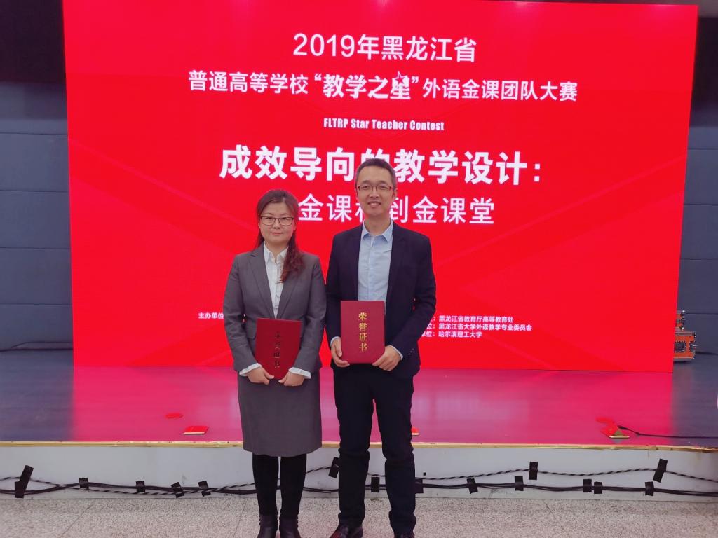 11月9日上午,2019年黑龙江省普通高等学校“教学之星”外语金课团队大赛总决赛在哈尔滨理工大学举行,华体(中国)外国语学院由杨阳、安超、宋颖、王宁、石亮组成的商务英语专业团队荣获”金课团队大赛二等奖。