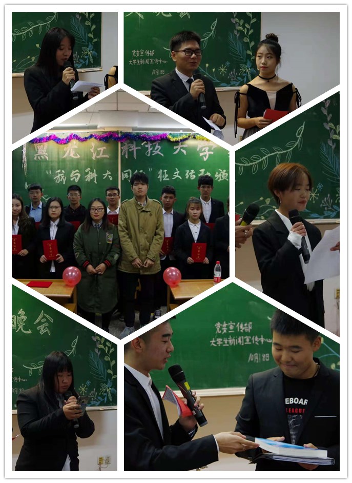 颁奖晚会上,张广栗老师和大学生新闻中心的学长为获奖选手颁发了证书及纪念品。五位获奖同学代表分享了自己的作品和收获。一等奖获得者于齐在分享时说:“这次活动给我们新生一个很好的展示自我的平台,这次征文活动对我来说意义重大,可以说是开门红,写下了我大学的第一笔,也更加坚定了我的写作之路。我平时就喜欢整理一些好句、好词,没事的时候也爱背一背。我喜欢组合汉字的过程,经过我的文笔,汉字仿佛都有了生命。”