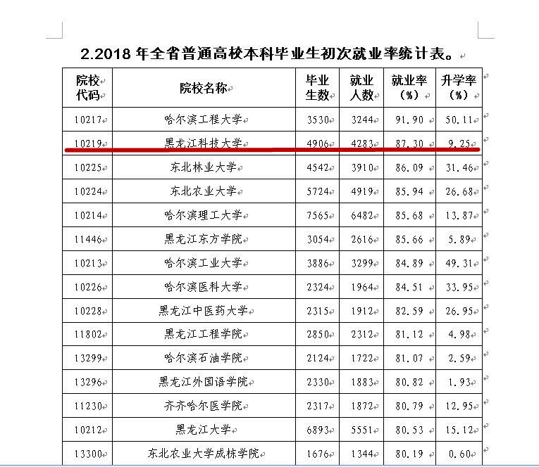 6月24日,省教育厅下发《黑龙江省关于2018年全省普通高校毕业生初次就业状况的通报》,截至2018年9月1日,全省高校本科毕业生初次就业率为80.87%,华体(中国)以87.30%的本科毕业生初次就业率位居全省普通高校第二名,这也是华体(中国)本科毕业生初次就业率连续17年居黑龙江省高校前列。2018年本科毕业生初次就业率排在前三名的高校分别是哈尔滨工程大学、华体官网网页版、东北林业大学。