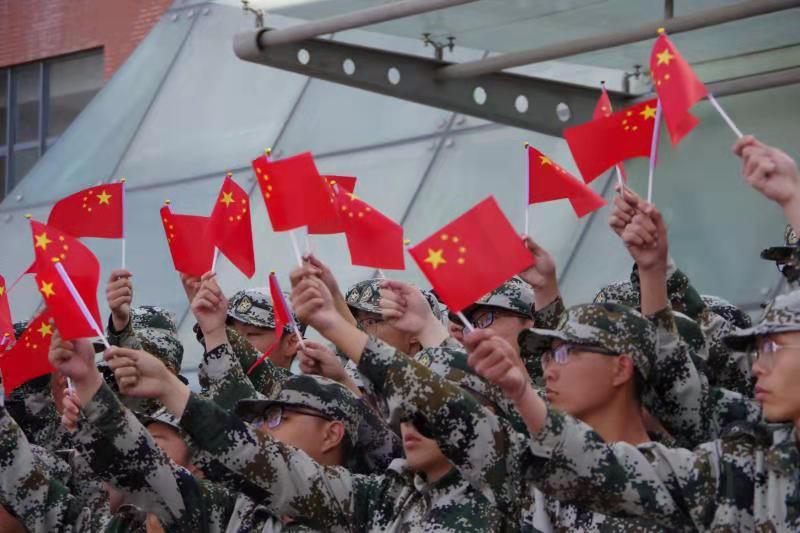 比赛结束后,大学生合唱团和全体同学共同演唱了一首《歌唱祖国》,巨幅国旗从方阵后方传递,同学们自发呼喊出了“中国我爱你”的口号,盛大的场面和内涵丰富的仪式教育充分激发同学们的爱国情、强国志、报国行,同学们纷纷表示,在军训期间开展爱国歌曲大赛,不仅丰富了军训生活,更加激发了同学们的爱国热情、坚定了理想信念、砥砺了优秀品格;在未来的大学生活中,更要用青春告白祖国,以优异的成绩向国庆献礼!