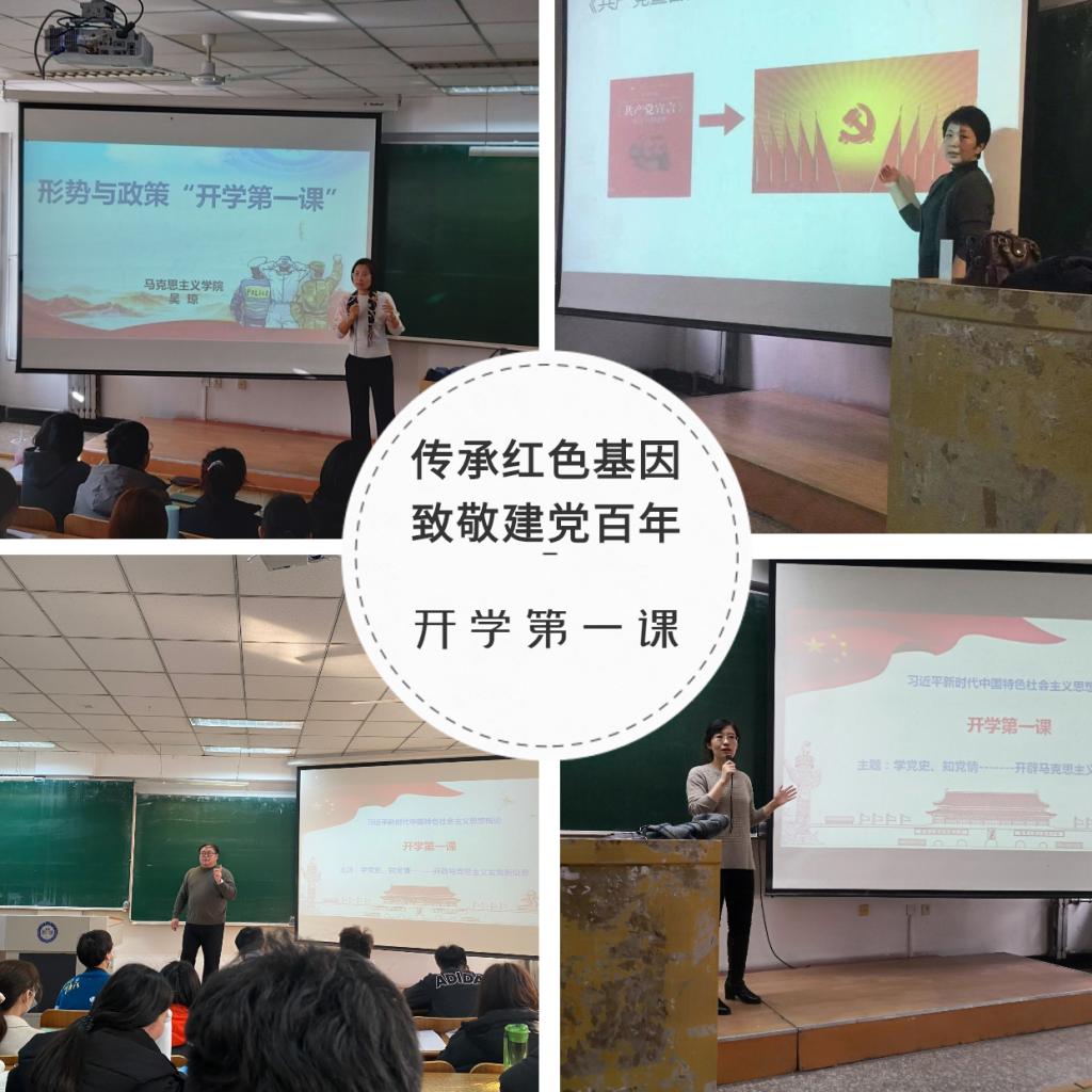 二是组织开展同上“一堂思政课”活动。学校充分发挥思想政治理论课铸魂育人主渠道作用,以“传承红色基因 致敬建党百年”为主题,把党史学习教育纳入年度教育教学计划,推动思想理论教育与党史学习教育相结合。马克思主义学院作为实施开展教学单位,从教学组织、教学实践、教学质量等方面做出了详尽安排,形成了系统完善的推进落实机制。开学初,通过思政课课堂开展了全校同上“一堂思政课”活动,为大学生讲授了“党史第一课”。教学督导深入课堂,对“开学第一课”进行专项督导,大学生对党史第一课有极大的兴趣,对党的历史有了更加深刻的了解和认识。