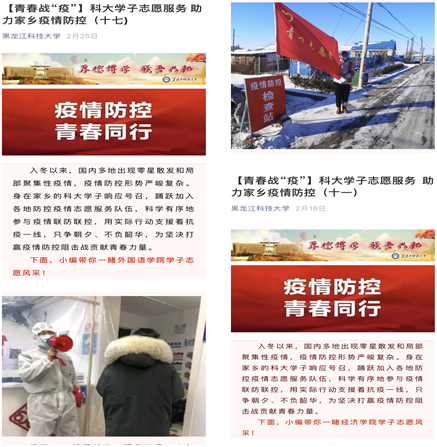 四是开展抗疫志愿典型宣传活动。积极开展向疫情防控志愿服务典型学习活动,学校通过官方微信推送了十七期华体官网网页版学子志愿服务助力家乡疫情防控专题报道,教育引导师生员工以身边典型为榜样,弘扬抗疫精神和志愿服务精神,并贯穿到日常学习、生活和工作中,为坚决打赢疫情防控阻击战凝聚智慧和力量。