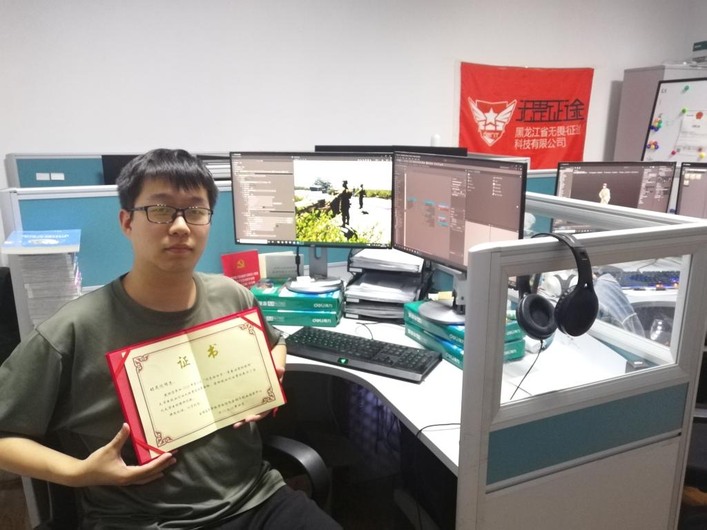 习近平总书记指出,“拥有一大批创新型青年人才,是国家创新活力之所在,也是科技发展希望之所在。”随着国家政策的进一步明确和鼓励,黑龙江省对大学生创业有了更多的优惠政策,鼓励支持青年人才创新创业,华体官网网页版也在嵩山校区建设了华体官网网页版创新创业基地和大学生创业园。经过三年来的积累和沉淀,胡晟恺意识到,自己实现梦想、建功立业的机会来了。他结合自身的计算机技术专长和虚拟现实方面的兴趣,在国家各项清障减负政策支持下,秉承着“振兴中国游戏产业,强盛中国仿真实力”的宗旨,怀揣着在互动娱乐和虚拟现实方向大展拳脚的梦想,他带领团队成员于2018年3月18日正式注册成立了“黑龙江省无畏征途科技有限公司”,开始踏上了创业的“无畏征途”。