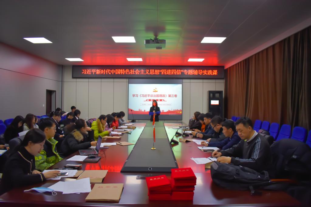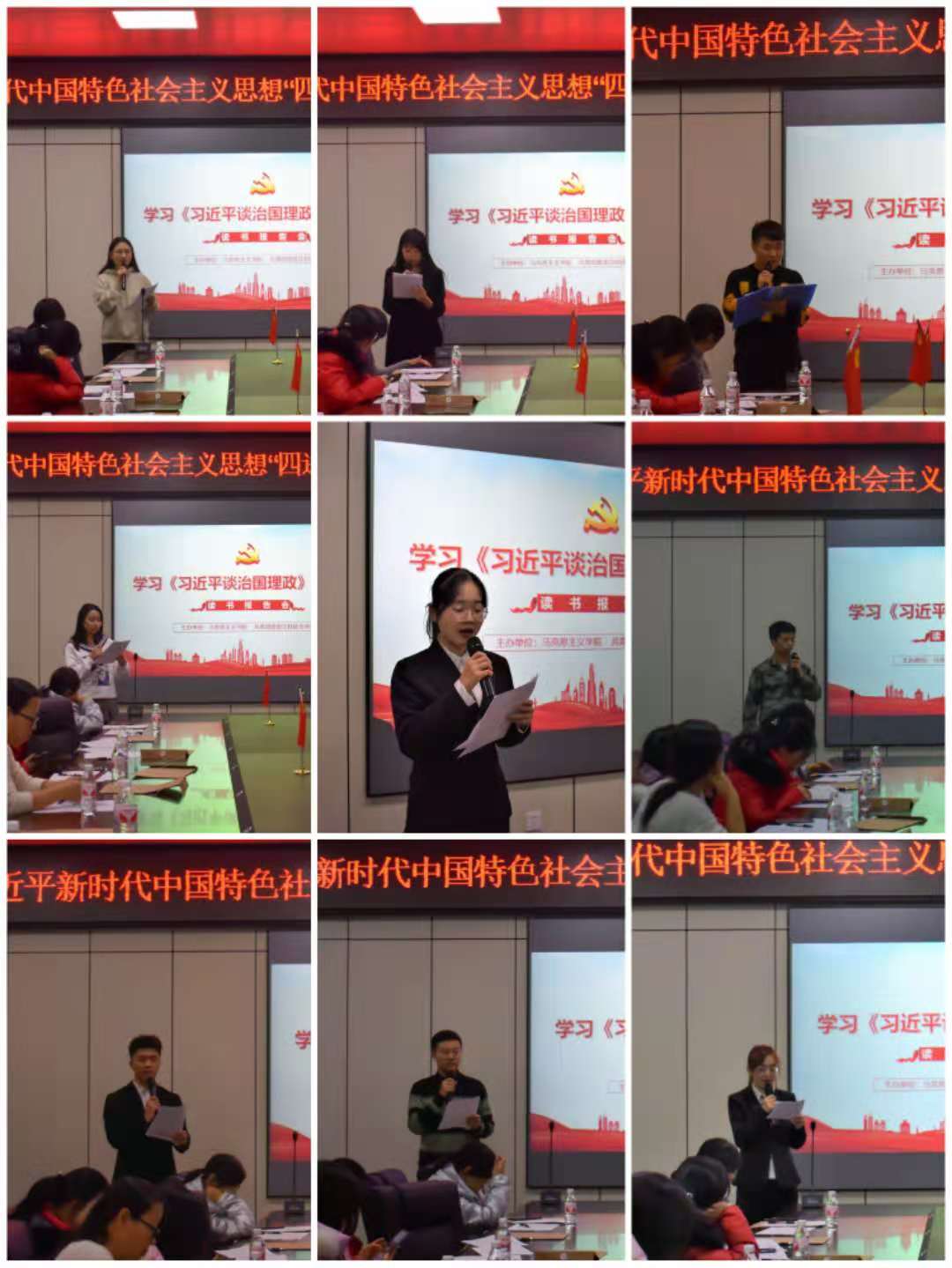 12月2日,华体(中国)在马克思主义学院智能化教学示范中心举行青年学生学习《习近平谈治国理政》第三卷实践教学暨读书报告会。马克思主义学院党政领导班子成员,校团委副书记马紫薇,“四进四信”全体授课教师和2018级学生代表参加了报告会。