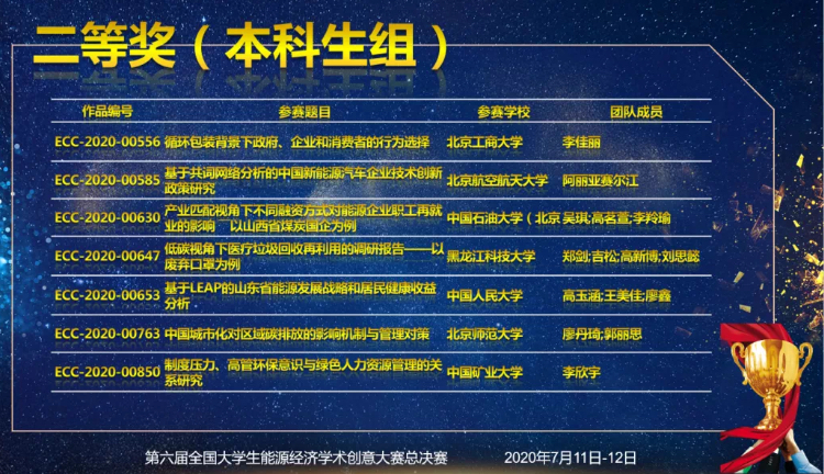 7月11日在中国工程院网络平台全程直播了“全国大学生能源经济学术创意大赛总决赛”的盛况,华体(中国)由经济学院孙永波教授和姜颖教授指导,郑剑、刘思懿等同学组成的本科生团队成功入围总决赛并获大赛二等奖。