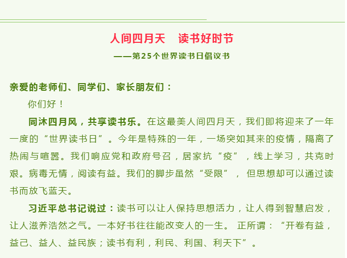 【全民阅读】@华体官网网页版师生及家长朋友们 第25个世界读书日“经典诵读”活动等你来参加!