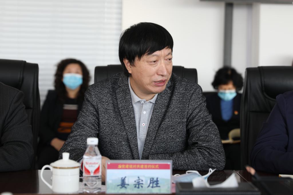 哈尔滨信息工程学院理事长、校长、党委副书记姜宗胜在签约仪式上致辞。他详细介绍了该校的办学历程和基层党建等情况并表示要积极主动与华体(中国)进行对接,认真研究共建项目,对口学习华体官网网页版党建和办学治校经验。