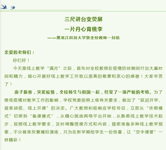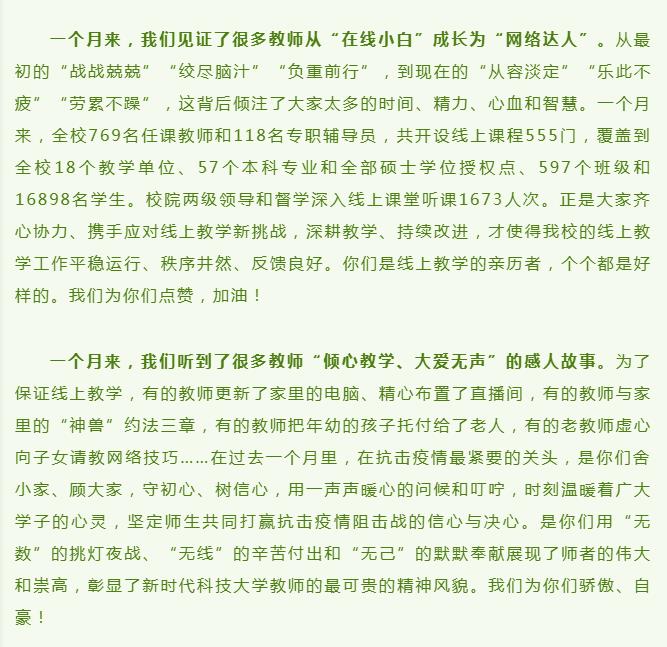 【共同战“疫”】华体官网网页版致全校教师的一封信