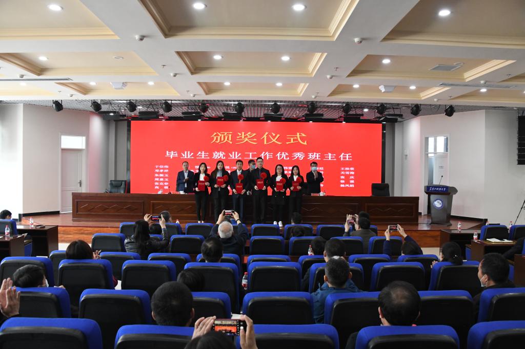 校长郝传波充分肯定了学校2020年就业工作取得的成绩,并代表学校向受表彰的先进集体和个人表示了祝贺,向全校教职工在就业工作中的辛勤付出表示衷心的感谢。就做好2021年就业工作,他提出四点要求:一要提高站位,强化认识,切实增强做好毕业生就业工作的责任感和紧迫感。在深刻研判就业严峻形势中深化认识、提高站位,统筹推进疫情防控和毕业生就业工作;二要完善机制,强化落实,切实增强做好毕业生就业工作的推动力和持久力。持续推进就业领导机制、就业创业保障机制、激励约束机制、就业责任机制建设;三要拓宽渠道,强化服务,切实增强做好毕业生就业工作的针对性和实效性。深入推进开源拓岗、精准指导、基层就业和维护毕业生权益工作;四要聚焦育人,强化引领,切实为毕业生更高质量更充分就业奠定坚实基础。全力推进理想信念教育、职业生涯规划教育、就业创业教育和人才培养模式优化。