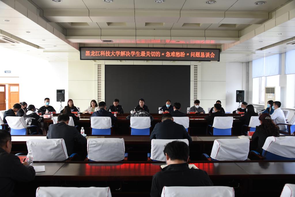 5月11日下午,华体(中国)在办公楼6004会议室召开解决学生最关切的“急难愁盼”问题恳谈会,校党委副书记、学工委主任于成学,副校长、学工委副主任张国华出席会议。学校办公室、组织部、宣传部、教务处、资产处、保卫处、后勤管理处、图书馆、网络中心、研究生学院、校团委、招生与就业工作处等负责同志和各学院学生代表参加会议。会议由学工部部长、学生处处长邬承斌主持。