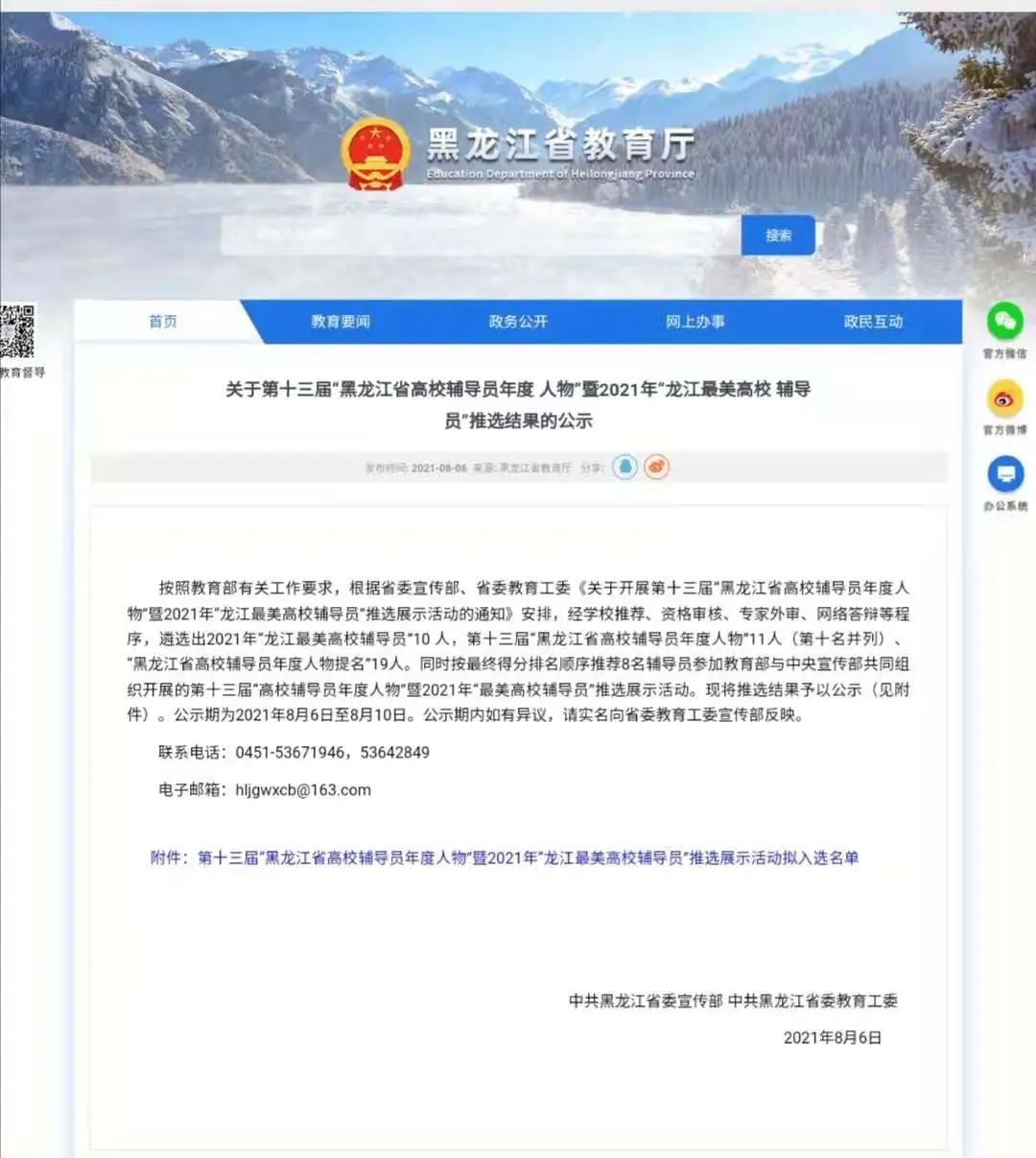 近日,由省委宣传部、省委教育工委主办的第十三届“黑龙江省高校辅导员年度人物”暨2021年“龙江最美高校辅导员”评选活动结果揭晓,华体(中国)国际教育学院党委副书记徐海英荣获2021年“龙江最美高校辅导员”荣誉称号;电气与控制工程学院学工办副主任韩大伟荣获第十三届“黑龙江省高校辅导员年度人物”提名。徐海英将代表黑龙江省参加教育部2021年“最美高校辅导员”推选展示活动,这是华体(中国)辅导员首次被推荐参加全国最美高校辅导员评比。