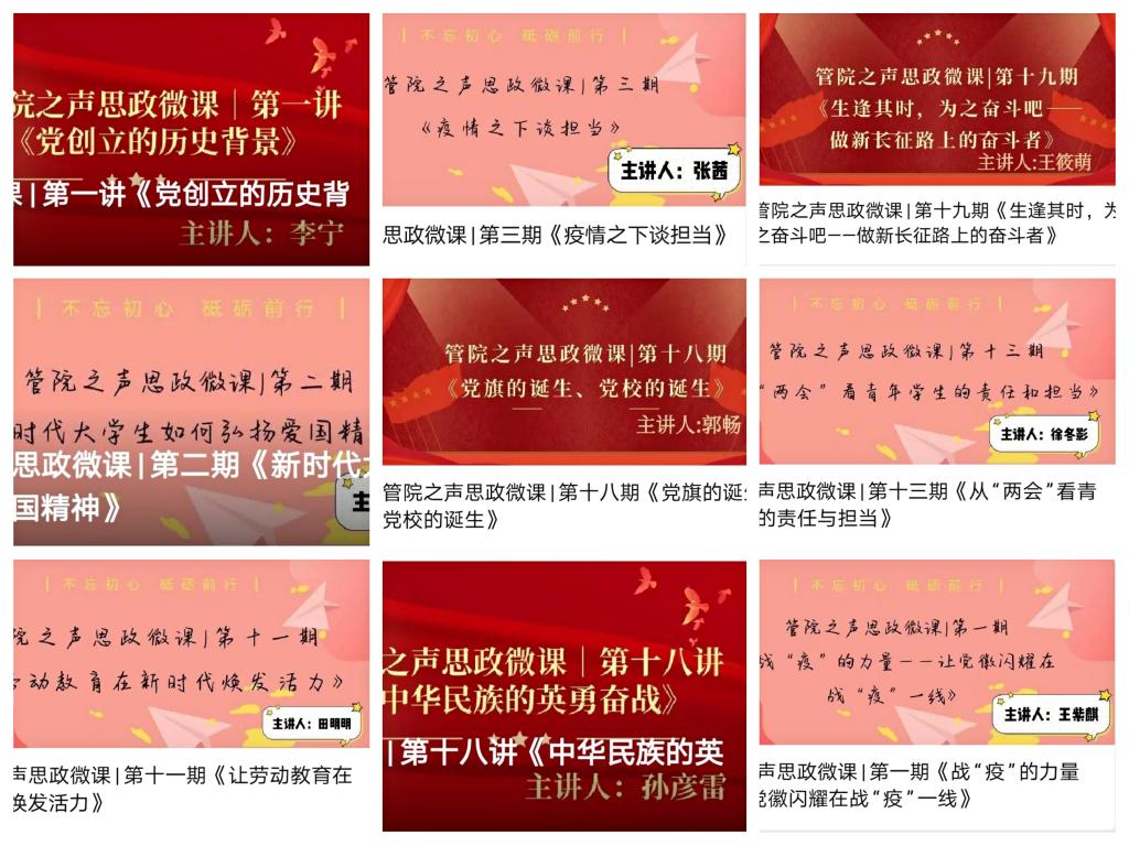 做实做强“思政微课”,助力教师成长发展。学院积极抢占云端工作制高点和思想育人主阵地,坚持师德师风建设“零懈怠、零盲区、零漏洞、零距离”的基本原则,积极发出学院师德师风建设之声。针对党史学习教育、疫情防控工作、教书育人、科技育人、实践育人等方面,累计推送云端“思政微课”61次。在思政微课的全方位立体式的运作下,做到了“守好一段渠,种好责任田”且助力教师成长发展。