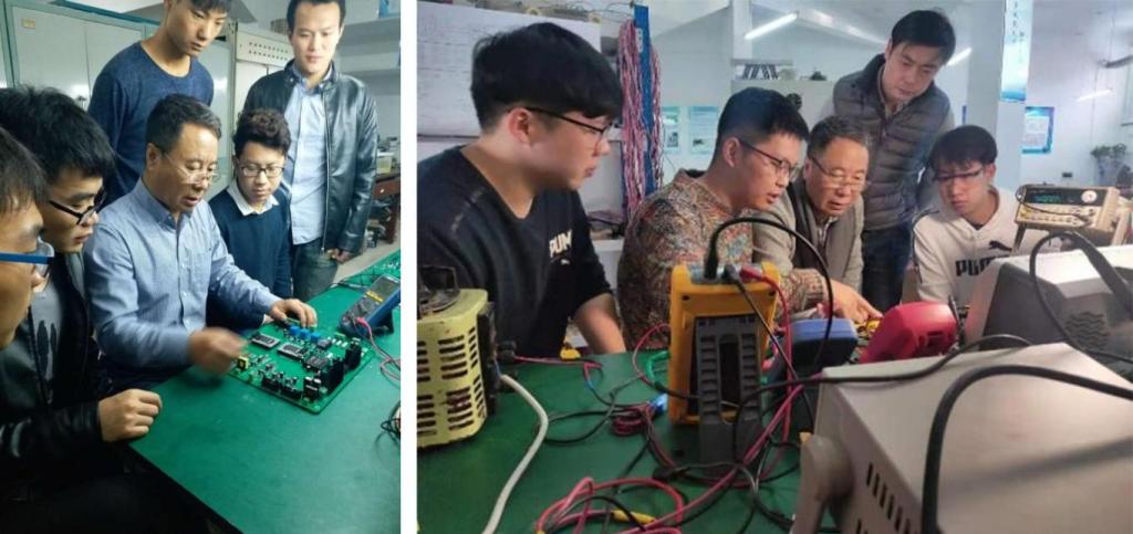 教学之实,贵在学以致用,问渠那得清如许,为有源头活水来。我把标志性电赛作为培养应用型优秀学生的“定向标”,不仅可以锻炼学生的科研能力,提升学术综合应用水平,更能进一步增强自身素质,磨练刻苦钻研的意志。他们是我的学生,也是我的孩子,我的时间几乎全部奉献给了参赛团队,电路重要节点的推敲和方案拿捏、关键点的波形测试、实验数据的科学分析,我都参与其中。在赛程紧张的冲刺阶段时,我会像年轻人一样陪学生们一起通宵达旦,始终与竞赛团队团结在一起、战斗在一起,基本没有双休日和节假日。学生一次次地劝我:“老师,您累了一天了,回去好好休息吧!”但每次,都被我婉言拒绝,我深知竞赛的关键时刻,必须得紧密关注,陪在他们身边,给予帮助和支持!