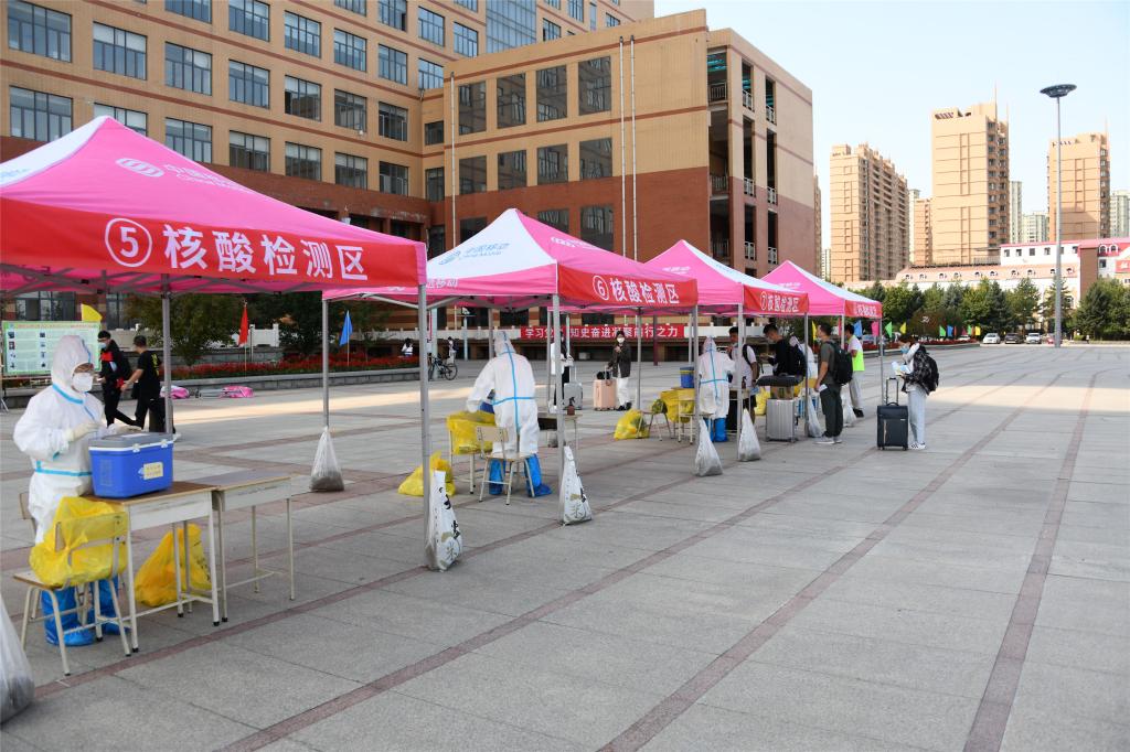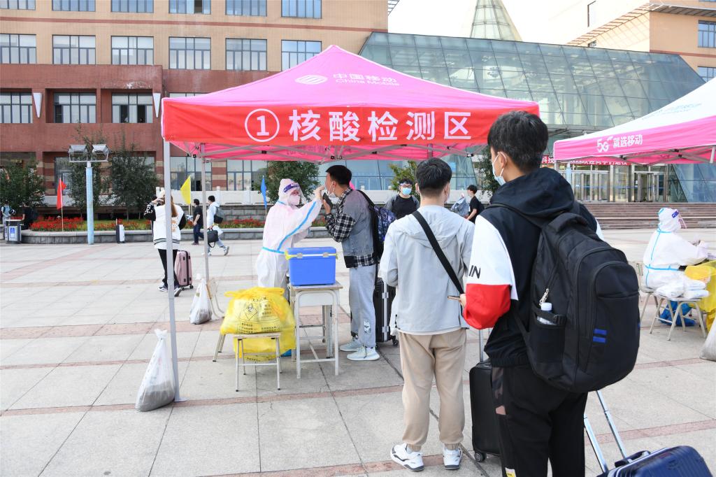 早上七点,学校工作人员们已经在各个流程服务点准备就绪,等待着返校学生的归来。返校学生佩戴口罩,在校门口通过人脸识别进入校园,出示“龙江健康码”,查验48小时核酸检测阴性报告、对携带的行李进行全面消毒、测量体温,进行核酸检测,核对与检测无误后进入校园,持《入住通知单》返回宿舍,等待核酸检测结果。学生工作干部在学生公寓设立志愿服务台,做好已返校学生等待核酸结果管理工作,教育引导学生非必要不外出,做好学生各类需求服务工作。学校安排符合返校条件的学生,分批次错峰返校,截止到目前,15687名学生顺利返校,开启了新学期的学习和生活。