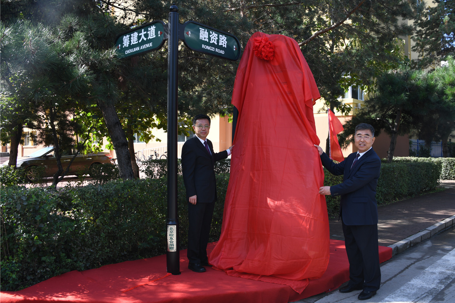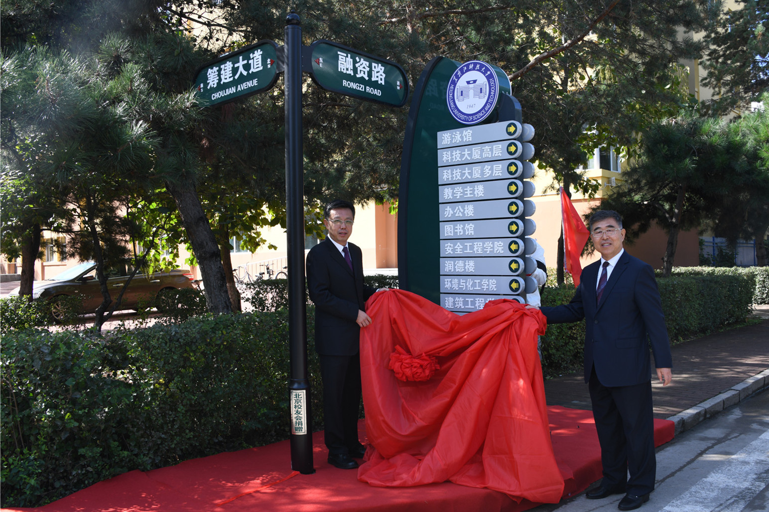 9月10日,华体(中国)为北京校友会捐建的校园指示路牌举行揭幕仪式。党委书记周宏力、校长郝传波为路牌揭幕,学校领导、各单位党政负责人、教师和学生代表参加仪式。