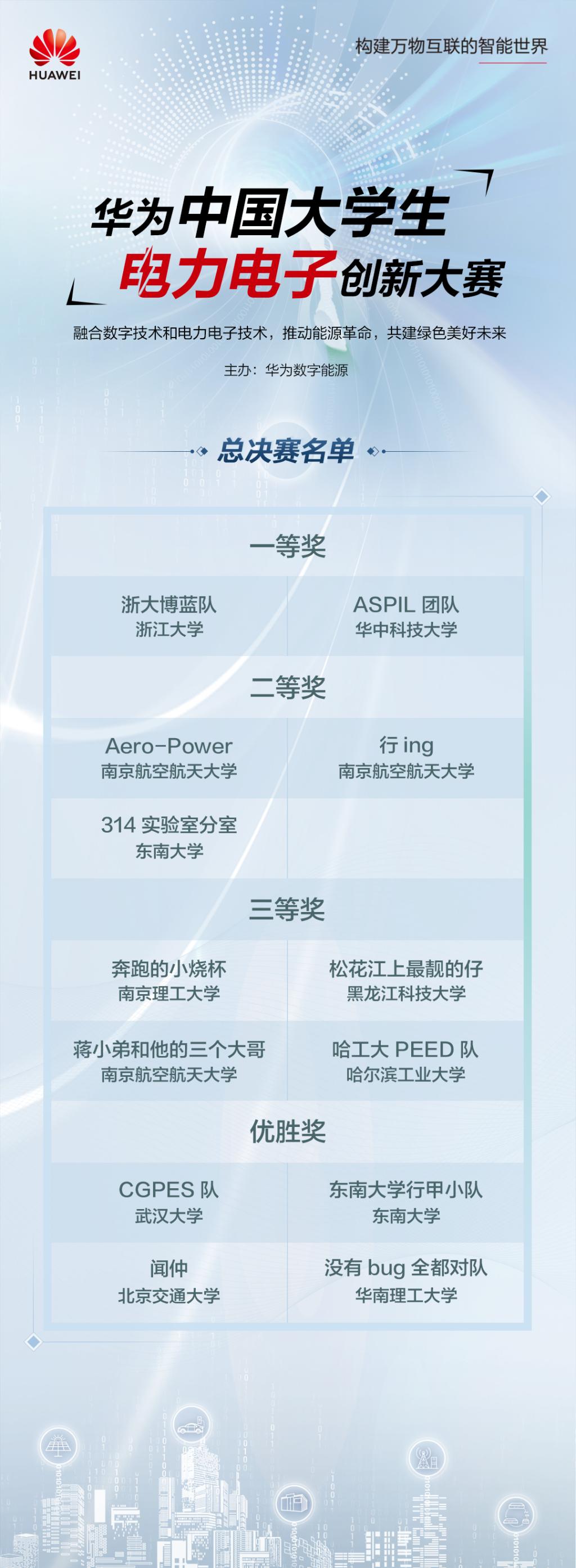 据悉,“华为中国大学生电力电子创新大赛”是华为数字能源面向全国大学生打造的首届电力电子人才竞技交流赛事,本次大赛备受电力电子行业和高校的关注,大赛评委由电力电子行业知名专家和华为技术总工程师共同担任。