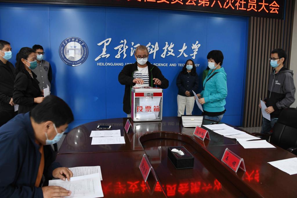 韩志民副主委宣读九三学社省委《关于对九三学社华体官网网页版支社换届的批复》,张劲勇副主委作换届选举大会筹备工作报告,宣读了《九三学社华体官网网页版支社委员会委员选举办法》,并全体表决通过。