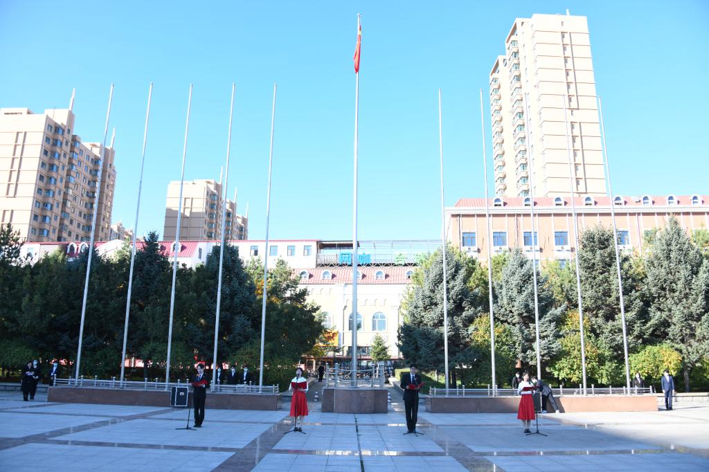 为热烈庆祝中华人民共和国成立72周年,进一步激发全校广大青年学生的爱国情、强国志、报国行,引领广大青年坚定制度自信,凝聚青春力量,10月1日早8:00,“青春向党 强国有我”主题升旗仪式在科技广场举行。校党委书记周宏力,校党委副书记赵科学,在校值班领导副校长、党委常委张宝成,学校办公室、宣传统战部、学工部、校团委、保卫处、信息网络中心部门负责人,专职团学工作干部和青年学生代表参加了升旗仪式,升旗仪式由校团委副书记马紫微主持。
