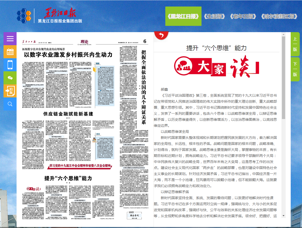 党支部书记在《黑龙江日报》理论版发表文章