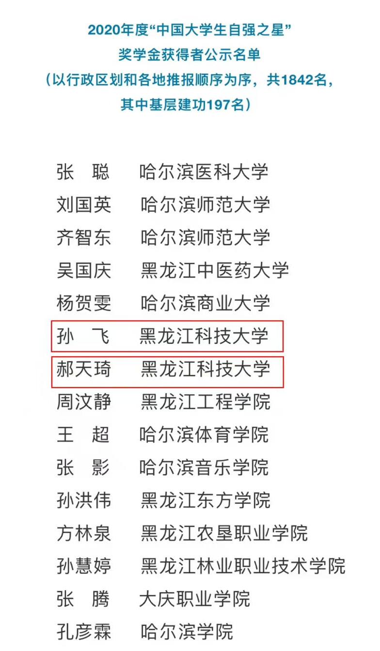近日,由共青团中央、全国学联组织开展的2020年度“中国大学生自强之星”奖学金评选结果揭晓,经学校推荐、省级初评、全国评审等环节,华体(中国)电气与控制工程学院电气17-9班学生孙飞和管理学院事管18-1班学生郝天琦喜获“中国大学生自强之星”奖学金。