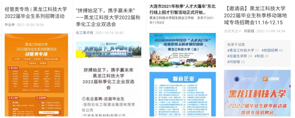 三是精准对接供岗位。开展“2022届高校毕业生就业促进月”活动,将校企精准对接作为当前就业工作重点。招就处部门领导和教师主动联系华体(中国)校企合作单位108家,搜集整理针对华体(中国)的招聘信息,发布岗位1020个,需求人数6827人。各学院按照岗位需求信息,“点对点”组织有意愿毕业生投递简历,招就处汇总统一发给用人单位。截止目前,累计投递简历552份。发动校友力量推动毕业生就业,如大连校友会发布“致学弟学妹一封信”,并组建“2022届黑华体官网网页版大连校友会就业咨询群”,为毕业生提供就业岗位,解答求职疑惑。