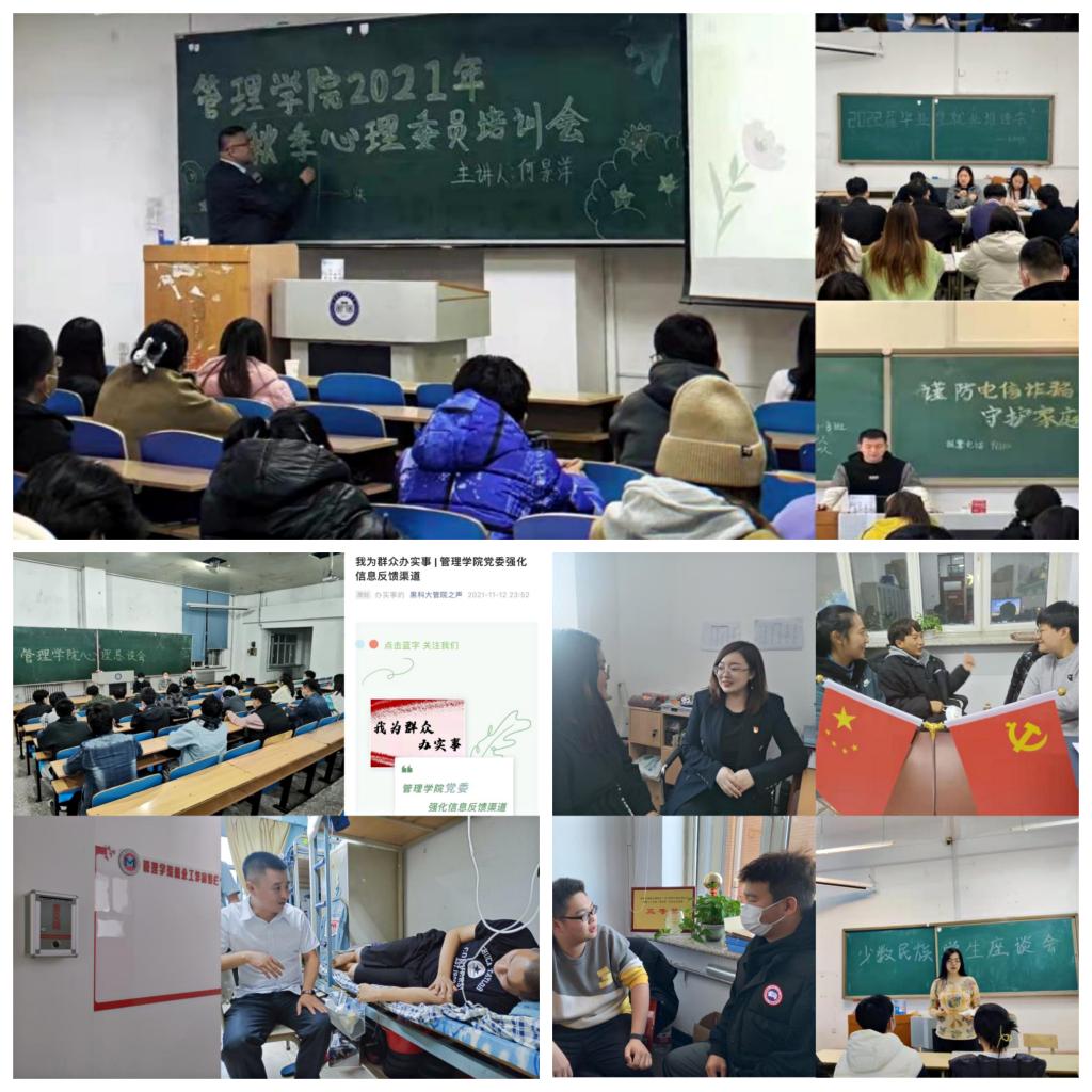 每个事项定好一个调,凝聚全院师生“咬定青松不放松”的劲头,共同发力。创建【管院之声】心灵沟通工作室,培育学院级心理健康教育工作特色且形成全员开展心理健康教育的局面,解决心理健康教育咨询工作队伍人少的问题;发挥好在心理健康教育咨询面有意愿有特长的领导干部、普通老师的作用;进一步扩大服务学生心理健康教育咨询面。成立“三笃”考研精英班、组建“导师团”,以学院开设专业为依托,以各系学术骨干为成员,组建了副院长为团长的8人考研答疑“导师团”,为考研学生提供从报考、备考到复试全过程的专业指导,最大限度的提供专业学习保障。