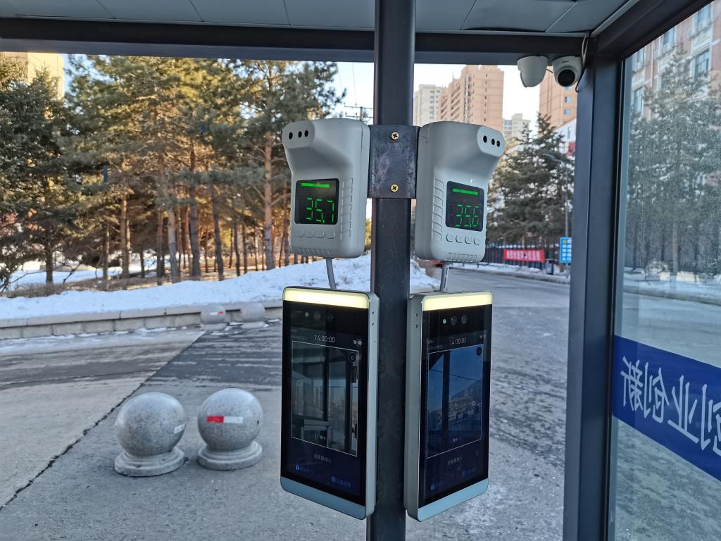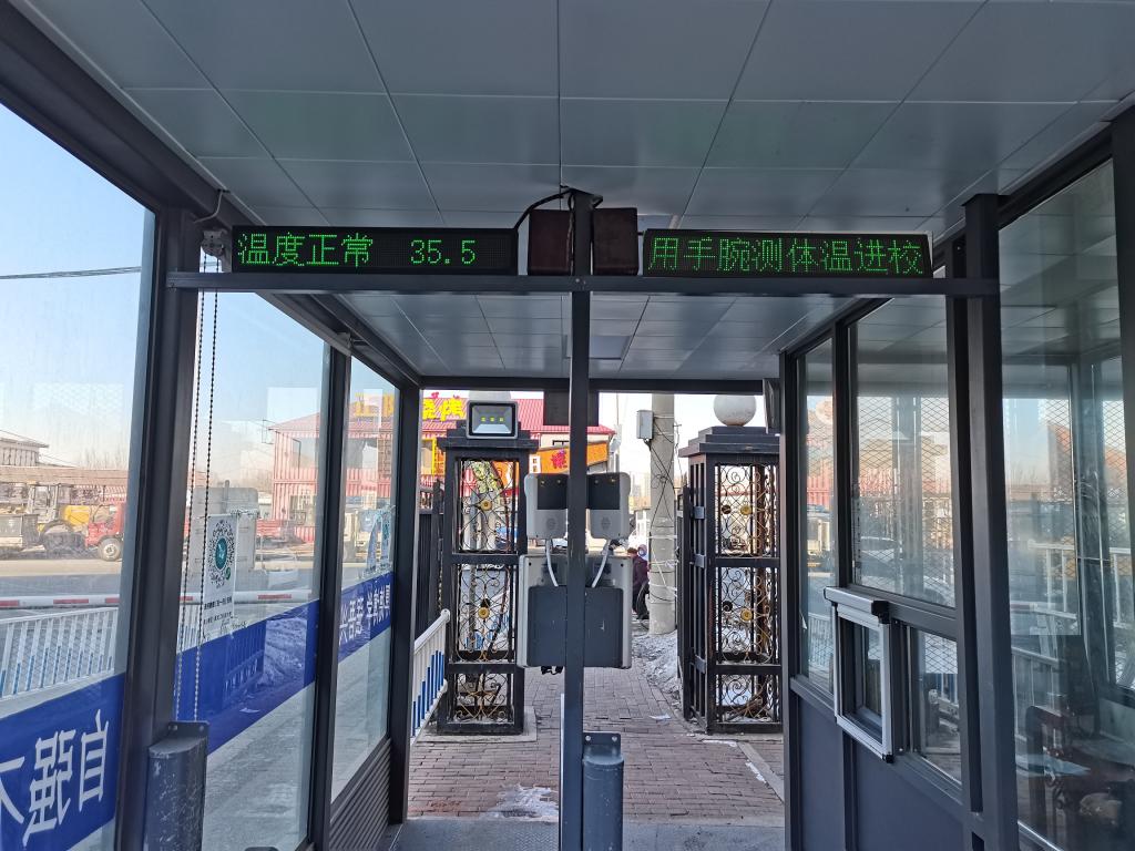 学校西北门、东北门、南门、家属区大门均已安装了快速人体测温系统,该系统具有测温、显示、语音播报、门禁控制、耐低温、可外接大型显示设备、联网等功能,测温仪显示并语音播报测量温度。该快速人体测温系统与原人脸识别系统配合使用,当刷脸成功体温正常,门禁随即放行。一旦出现体温异常的情况,自动发出语音预警并禁止通行,同时显示大屏出现红色报警信息,以便安保人员快速响应处理。该测温系统与原人脸识别系统一次性完成身份识别和测温,反应速度快,大大减少了门卫的手动测温工作量。同时该系统在北方冬季室外-35℃度左右仍能稳定工作,填补了市面测温仪在-20℃以下无法正常工作的空白。