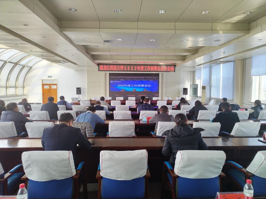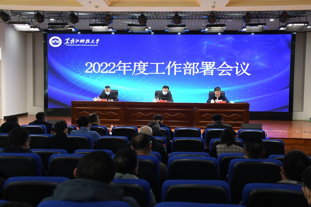 3月8日下午,学校2022年度工作部署会议在朝阳楼0131会议室召开,校领导班子成员出席会议,全校副处级以上干部、学科专业课程建设负责人分别在主、分会场以线上线下相结合方式参加会议。校党委书记周宏力讲话,校长孟上九部署工作,会议由党委副书记赵科学主持。