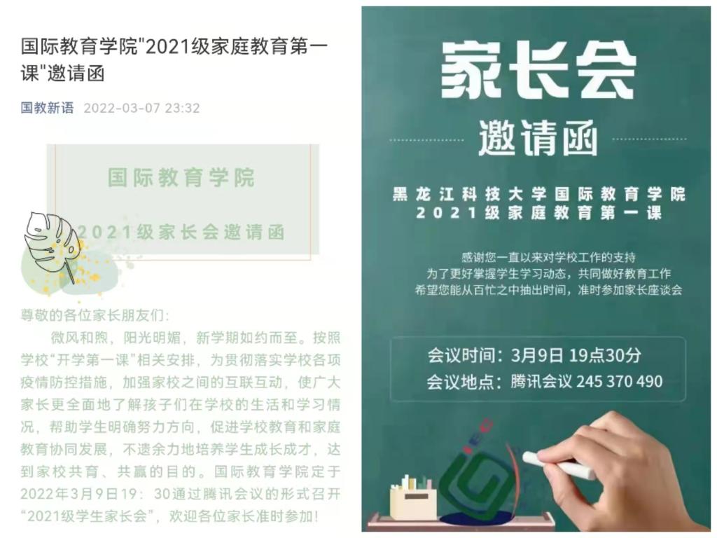 家校协同,携手配合,深入开展家庭教育课。依托微信公众平台、家长群、腾讯会议等多种形式,加强家校之间的互动联动,让家长全面了解学生在校学习生活情况,帮助学生明确努力方向,制定学习规划,使学生更好地进入学习状态。传达学校有关工作安排,与家长建立沟通桥梁,积极构建家校协同育人网络,不遗余力地保障学生安全健康,培养学生成长成才。