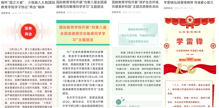 疫情防控是一场思政大课,学院结合党史学习教育及理想信念教育,将战“疫”与育人相结合,把疫情防控灾难变成教育资源,把思政小课堂同社会大课堂紧密结合起来,坚持通过不同途径进行“开学第一课”汇聚校园正能量,传递战“疫”好声音。通过开展”弘扬雷锋精神 传递爱心能量“、“青春聚焦党代会,争做奋进华体官网网页版人”主题团活,引领我院青年学生在实践中领悟中坚定理想信念,积极投身校园疫情防控工作,传承红色基因,践行初心使命,焕发学生奋进与担当,传递战胜疫情必胜信念。通过召开寒假社会实践表彰大会、志愿者经验交流会,宣扬在疫情防控、返校复课、文明校园等各类志愿服务活动中志愿工作事迹,树立模范榜样、分享经验感悟,激励我院青年学生积极主动地投入到校园疫情防控志愿工作中来,使“青年红”和“志愿蓝”在菁菁校园里交相辉映。通过参与式、体验式、互动式的方法,使战“疫”思政课堂“活起来”。