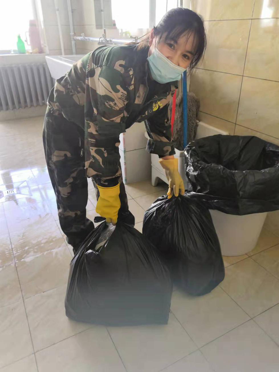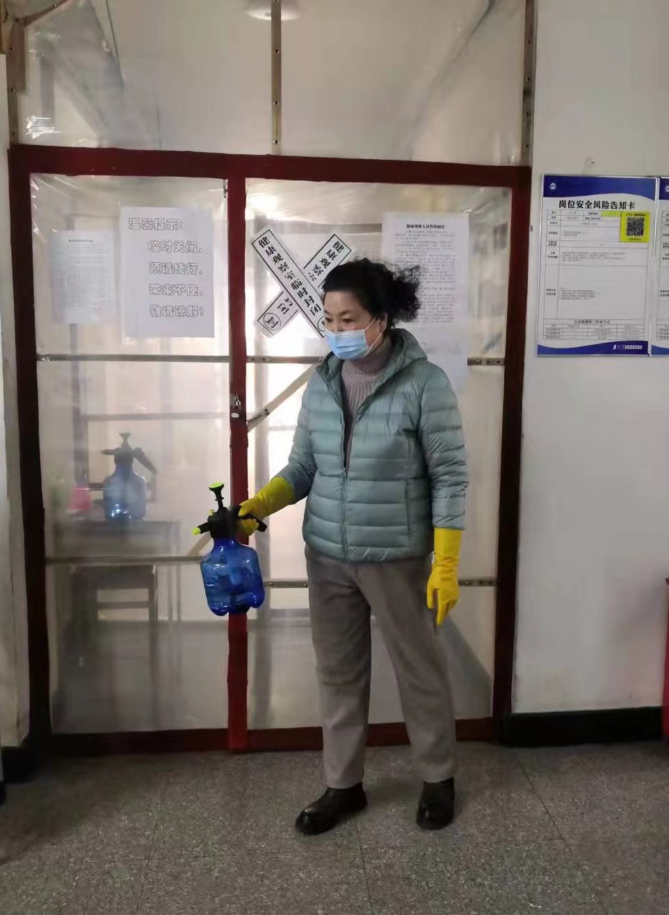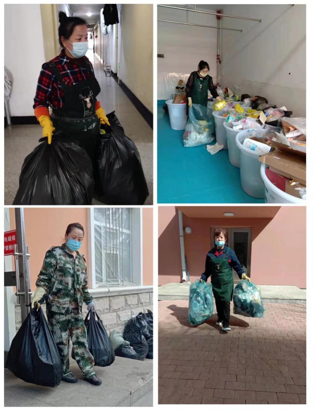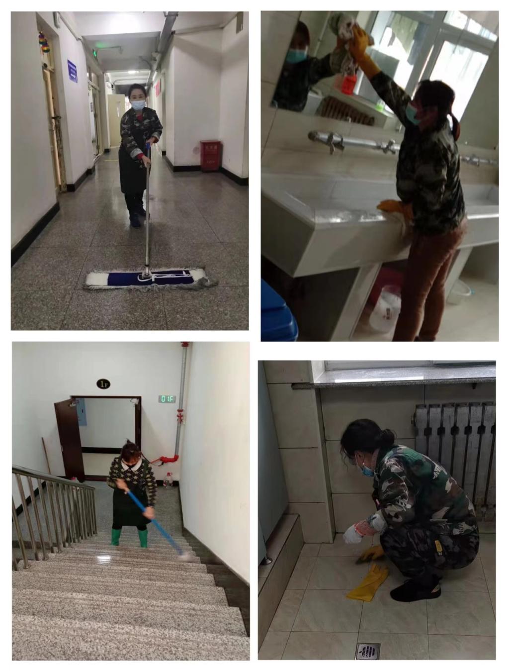 学生第十九公寓楼长吕晓萍得知学校号召服务人员住校后,第一时间积极响应学校号召,尽管她的孩子今年在读高中,也需要妈妈的陪伴与支持,但是想到学校里的“孩子”们需要她,这份信任让她坚守在学生公寓防“疫”一线,陪在学生身边,在她的带领下,她所负责的公寓保洁员12人全员住校。