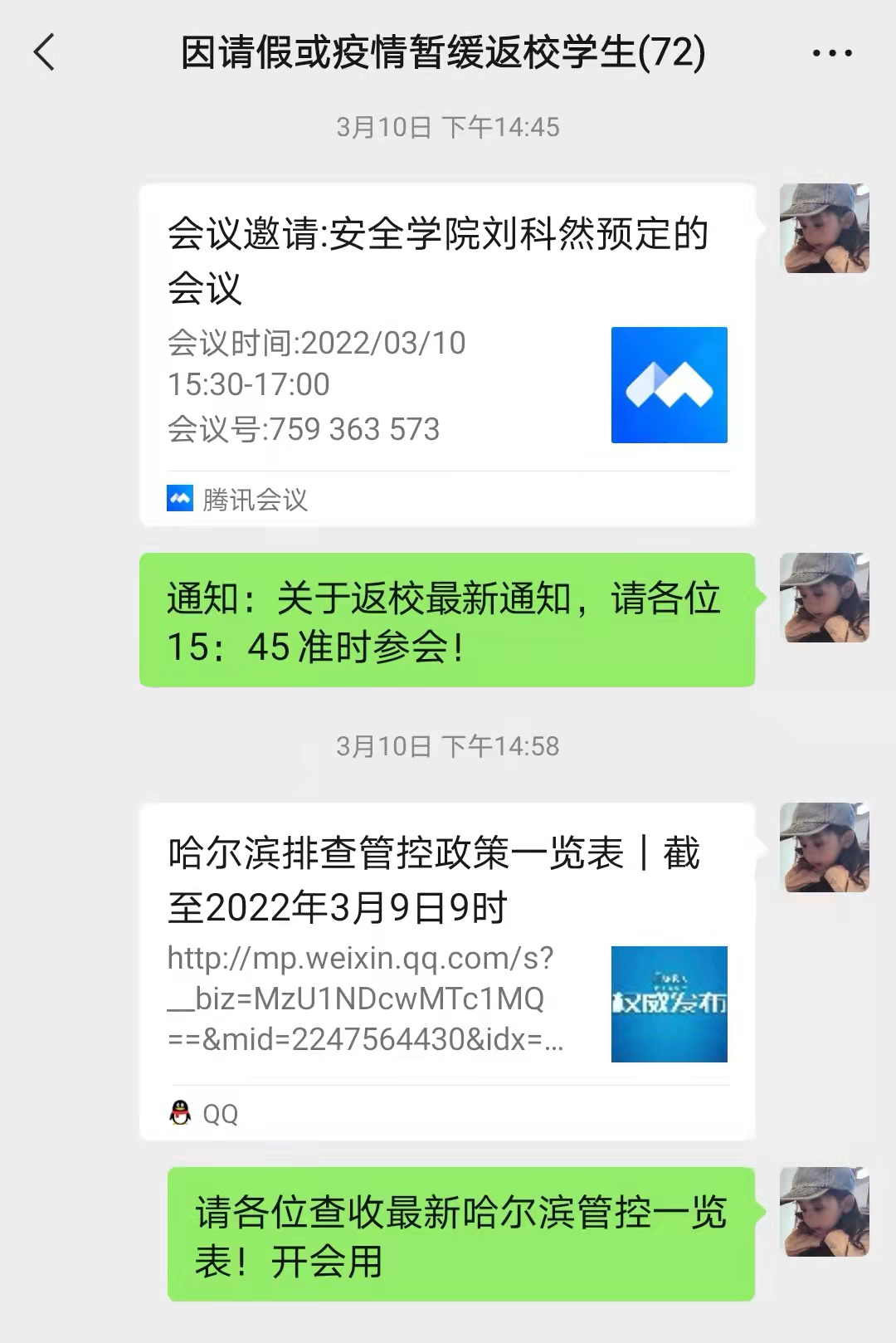 为精准安全有序做好常态化疫情防控形势下的学生返校工作,学院领导高度重视、提前谋划,把学生返校途中可能带来的疫情风险查在前面。2月12日,学院通过腾讯会议召开了2022年春季学生返校第一次班长工作会议。辅导员老师教育引导学生要认清当前疫情防控的复杂形势,从自身做起,连续十四天居家健康观测,严格遵守学校及属地关于疫情防控的管理要求,提前做好返校准备。2月22日,为准确掌握每名学生的行动轨迹、摸清底数、建立台账,做到全覆盖、信息准、无遗漏,学院分别召开了2022年春季学期开学班主任会议以及2022年春季学生返校第二次班长工作会议。党委副书记郑红岩在班主任会议上强调了学校疫情防控工作的重要性,要求全体班主任老师加强学生舆论引导,准确掌握每一名学生的行动轨迹,严格审批每一名学生的返校申请。辅导员刘科然、薛广鑫老师在班长会议上要求全体班长提高责任感、高标准完成信息排查工作。两名辅导员老师带领学院19名班长,连续7天,每日通过钉钉后台数据、学生自主上报、一对一询问等多种方式确保了对每名学生做到情况明、信息准、无遗漏,为学生安全有序返校做到了有力保障。