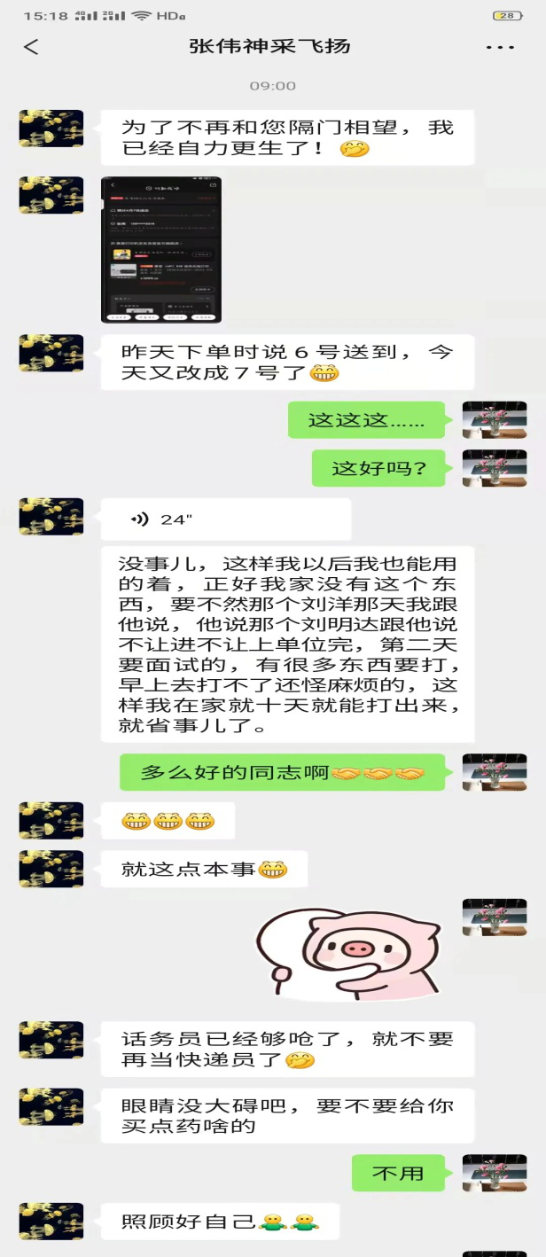 做完检测刚走出阳光大厅,收到我们家研究生秘书张伟的信息。