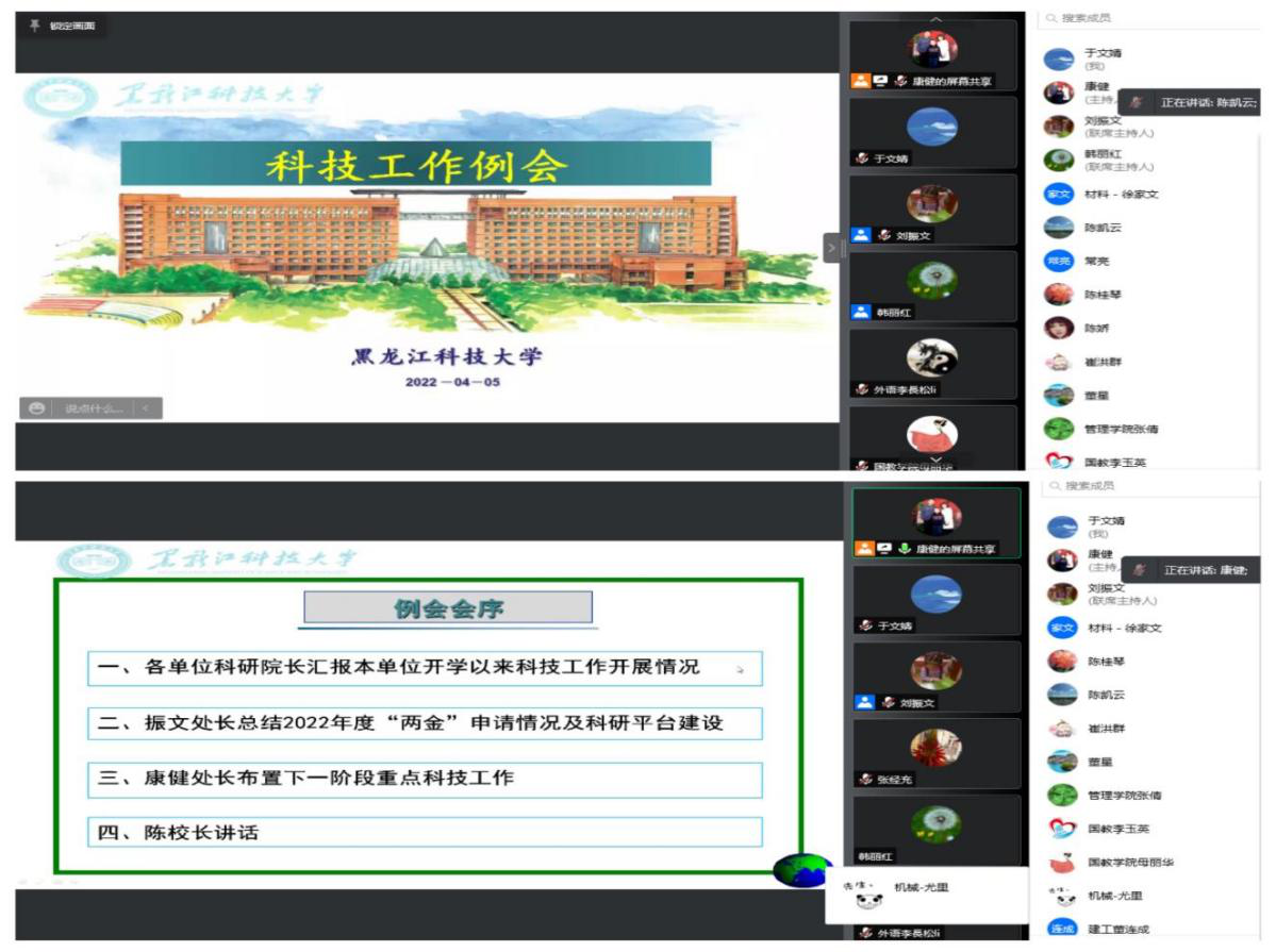 4月5日,学校召开科技工作例会,党委常委、副校长陈凯云出席会议并讲话。会议采取线上的方式进行,科技处处长康健主持。