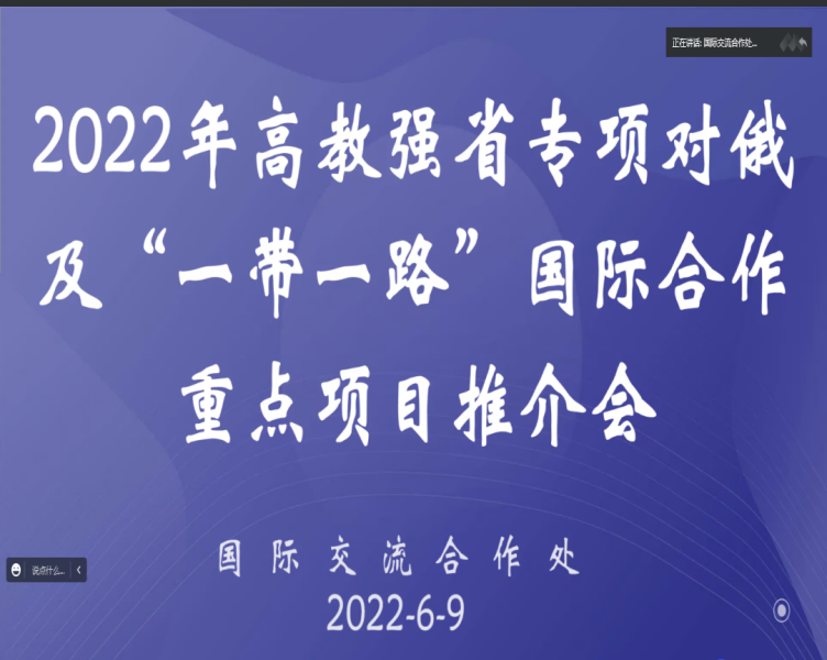 6月9日,国际交流合作处召开了2022年高教强省专项对俄及“一带一路”国际合作重点项目推介会,学校各二级学院科研副院长参加了会议。