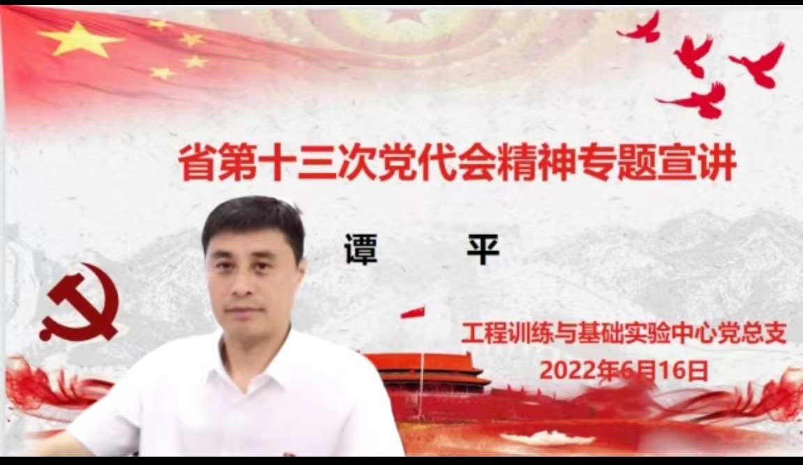 6月16日,工程训练与基础实验中心党总支组织召开了省第十三次党代会精神专题宣讲会,学校宣讲团成员、中心党总支书记谭平为中心教职工作了省第十三次党代会精神专题辅导。