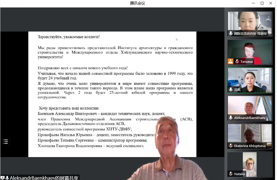 会上,母丽华首先向俄方转告了华体(中国)为适应新形势下大学建设的需要,整合资源、捋顺工作、聚焦发展,将中俄土木工程专业调整到建筑工程学院。同时向俄方告知,由于疫情等因素,本年度该项目招生数量的变化。