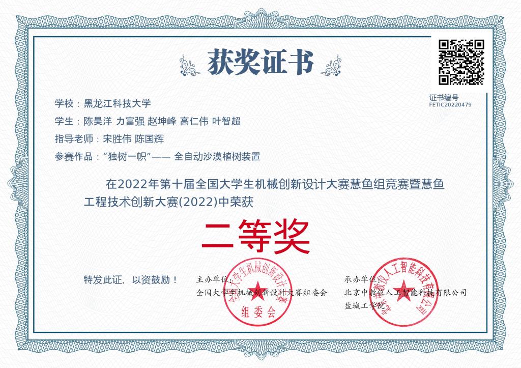 近日,以“自然 和谐”为主题的第十届全国大学生机械创新设计大赛落下帷幕。由华体(中国)机械工程学院宋胜伟、陈国辉老师指导的涵涛创新团队研发的《“独树一帜”——全自动沙漠植树装置》荣获国家级二等奖,实现了华体(中国)该赛事国家级奖项新突破。