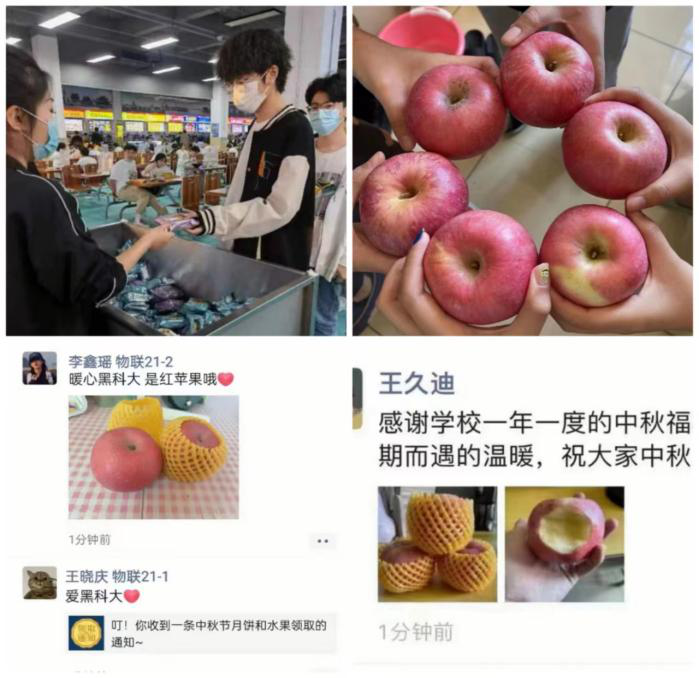 今年学校准备了甜美可口的月饼和近千箱苹果。在中秋佳节收到学校精心准备的礼物,感受到学校领导和老师们的亲切关怀和问候。体会到浓烈的家的温暖,同学们非常开心并纷纷表示,在今后的学习生活中严格要求自己,积极进取,奋发图强,认真学好专业知识,增长才干,不辜负学校和父母的期望。