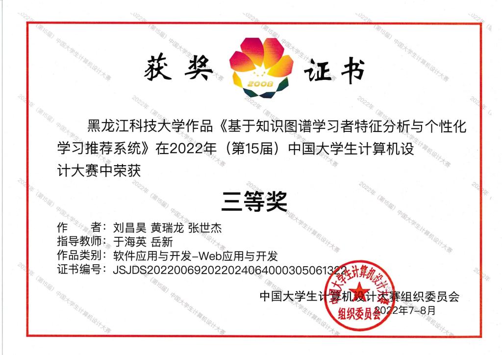 中国大学生计算机设计大赛是中国高等教育学会2021全国普通高校大学生竞赛榜单内赛事,是我国高校面向本科生最早的赛事之一,大赛以校赛、省赛、国赛三级竞赛形式开展,共有包括北京大学、上海交通大学、哈尔滨工业大学等850 所院校的6611件作品入围了本届国赛。创新创业学院按照《黑龙江省高等教育学会关于举办 2022年中国大学生计算机设计大赛黑龙江省赛的通知》要求,在全校范围内组织了省赛选拔赛。经过专家的严格选拔,9支优秀团队的作品在30个校赛作品中脱颖而出,代表学校参加省赛,并在省赛中,获得一等奖2项、二等奖2项、三等奖2项的历史最好成绩,省赛一、二等奖的作品入围了本届国赛,廉龙颖老师和冯新宇老师被省赛组委会评为优秀指导教师。