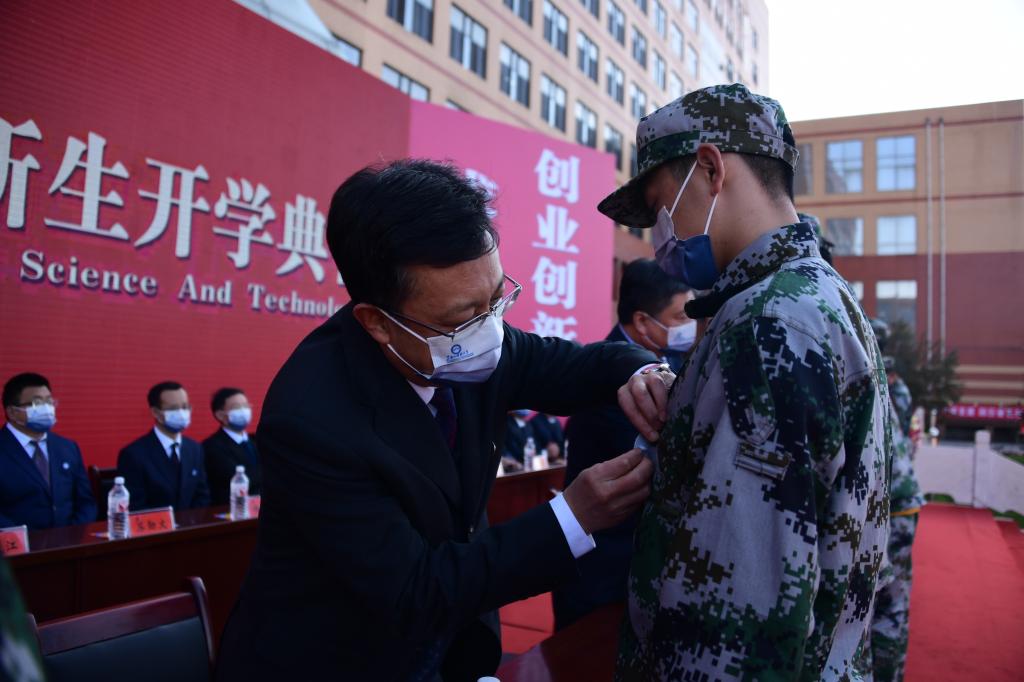 典礼上还举行了新生佩戴校徽仪式,校领导为新生代表佩戴校徽,希望新生们听党话、跟党走,勇担时代重任,不负青春韶华。