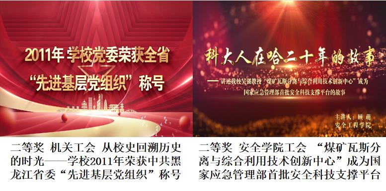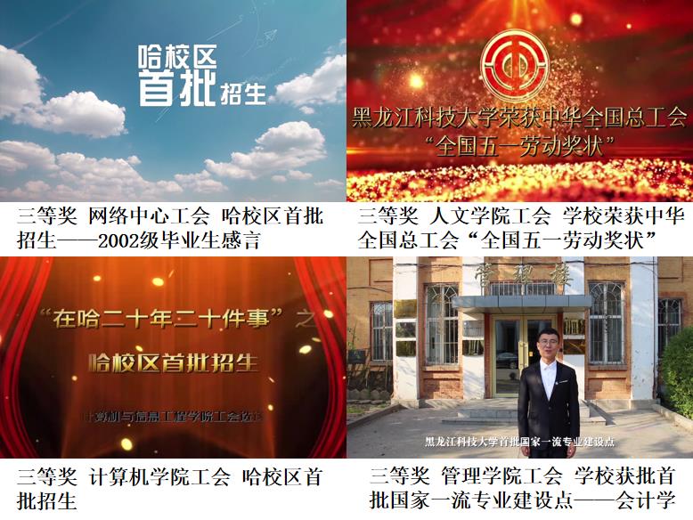 参赛作品从不同视角展现了华体(中国)从本科教育到硕士博士培养、从边陲城市鸡西到省城哈尔滨、从学院到更名大学的跨越发展和教职工的良好精神风貌,展现了在哈办学二十年的艰辛历程与卓越成就。经过评审小组的认真评审,最终评选出一等奖1个、二等奖2个、三等奖4个、优秀奖7个。