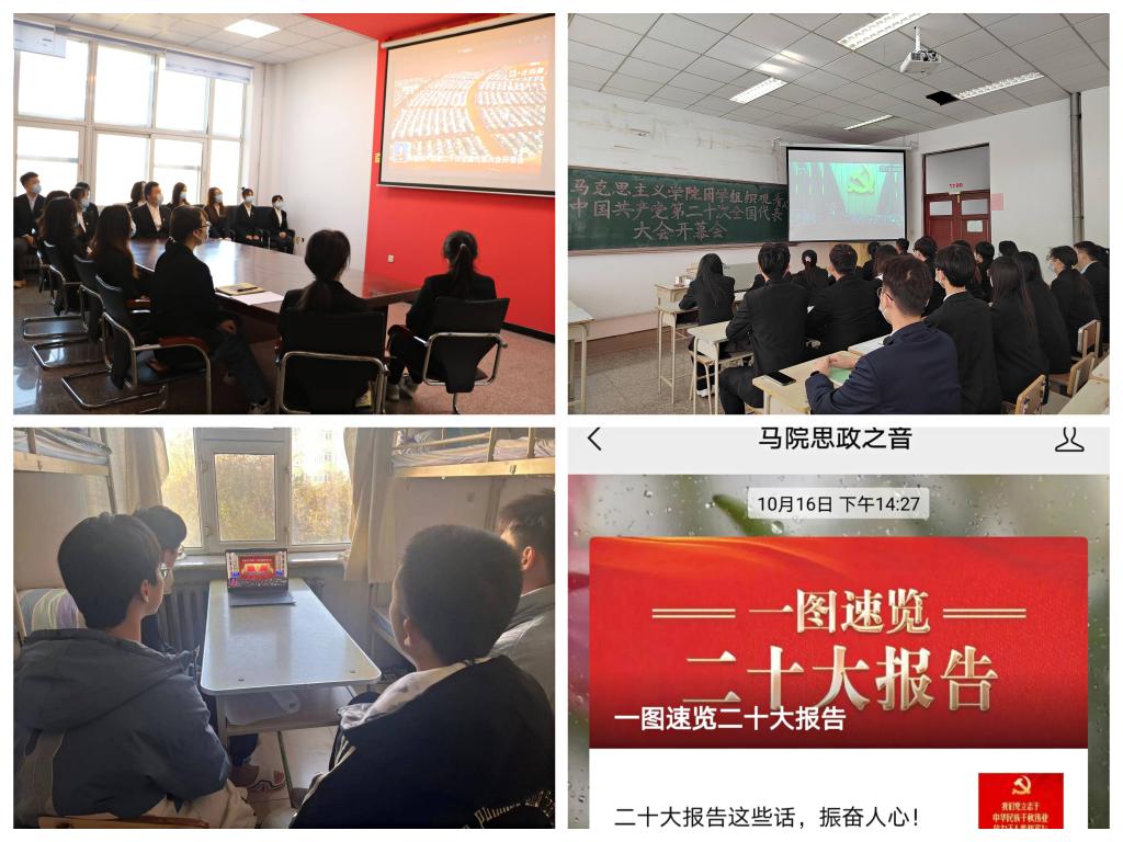党的二十大是在全党全国各族人民迈上全面建设社会主义现代化国家新征程、向第二个百年奋斗目标进军的关键时刻召开的一次十分重要的大会。10月16日马克思主义学院党委组织师生收听收看中国共产党第二十次全国代表大会开幕会。学院公众号平台“马院思政之音”通过转载主流新闻媒体相关报到,“一图速览二十大报告”、“党的二十大报告学习手账”和“党的二十大报告思维导图”,引导广大青年学生原原本本学习研读党的二十大报告,认真领悟党的二十大提出的新思想新论断、作出的新部署新要求。深刻领悟“两个确立”的决定性意义,加深对习近平新时代中国特色社会主义思想、马克思主义中国化时代化、中国式现代化等重大问题的认识。