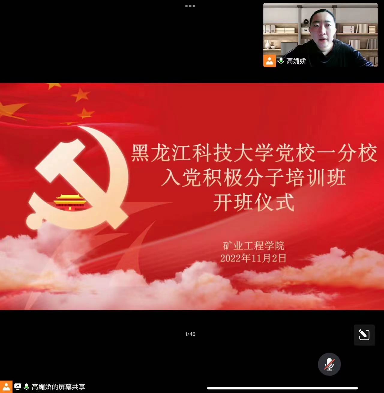 为热烈庆祝中国共产党第二十次全国代表大会胜利召开,深入学习宣传贯彻党的二十大精神,贯彻落实好党员发展培训工作,提高党性修养和理论素养,根据学校党委要求和学院党委部署安排,矿业工程学院于2022年11月2日通过腾讯会议的形式线上举行了学校党校一分校2022年秋季学期入党积极分子培训班开班仪式,本次开班仪式由矿业工程学院党委副书记李强主持。矿业工程学院党委书记刘海涛教授为全体参训学员进行第一次专题讲座。参加会议的还有全体学生党支部全体支部委员和参加此次培训班的95名学员。