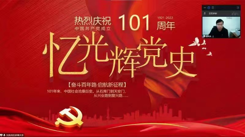 开班仪式结束后,学院党委书记刘海涛为学员们带来了本次培训班的第一堂课。课上,他从“不忘党史——传承革命精神”、“不忘职责使命——牢记党的嘱托”、“不忘党的初心——传承红色基因”、“扛起新使命,开启新征程”四个方面为学员们诠释了党史学习的重要性,他强调,广大学员要高举中国特色社会主义伟大旗帜,全面贯彻新时代中国特色社会主义思想,弘扬伟大建党精神,自信自强、守正创新,踔厉奋发、勇毅前行,为全面建设社会主义现代化国家、全面推进中华民族伟大复兴而团结奋斗;要始终铭记入党初心,不忘作为一名学生的职责与使命;要按照一名正式党员的标准严格要求自己,牢记党的宗旨,要担起新时代赋予青年的历史使命。