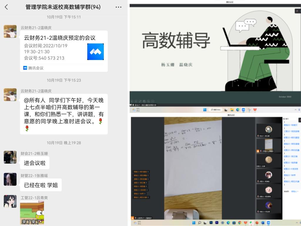 聚焦五个一精准发力,即:每个事项明确一个责任人,发挥“打破沙锅问到底”的精神,全程负责;每个事项定好一个调,凝聚“咬定青松不放松”的劲头,共同发力;每个事项解决一个真问题,精准聚焦阻碍事业发展的“绊脚石”,打通壁垒;每个事项建立一个大台账,领好“主攻任务”,步步为营;每个事项必收一个回音,把事办在“学生心坎上”,同频共振。如,开展“寝室静音工程”志愿服务活动,为学院89个新生寝室、124个老生寝室的寝室桌椅粘贴了防滑垫,改善了摩擦异响问题,对同学们寝室中存在的床铺晃动、柜门破损等问题进行了汇总并提供了解决方案;为未返校的大一新生建立“高等数学线上辅导群”,每周定期通过腾讯会议的方式进行讲解,极大程度的缓解了同学们因为未返校线下上课跟不上进度带来的学业焦虑;以学生需求为导向,设立“自习室”,结合实际情况,在管理学院双创中心设立考研自习室,共计7个教室,根据疫情防需要提供62个座位,将学院一楼党员之家、三楼会议室、ERP实验室和学院人文社科研究基地设立为备选区域以满足后续需求。